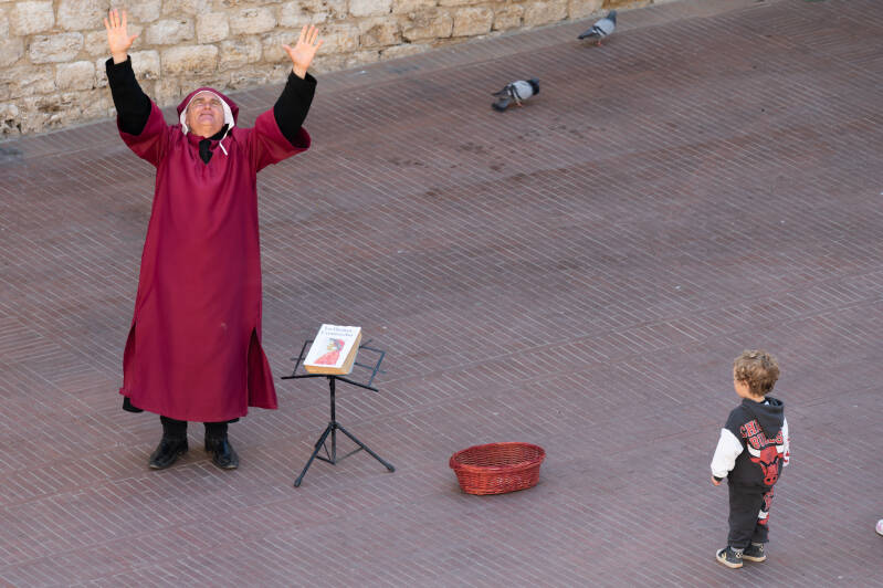 Artist reciting Dante's Divine Comedy, San Gimignano